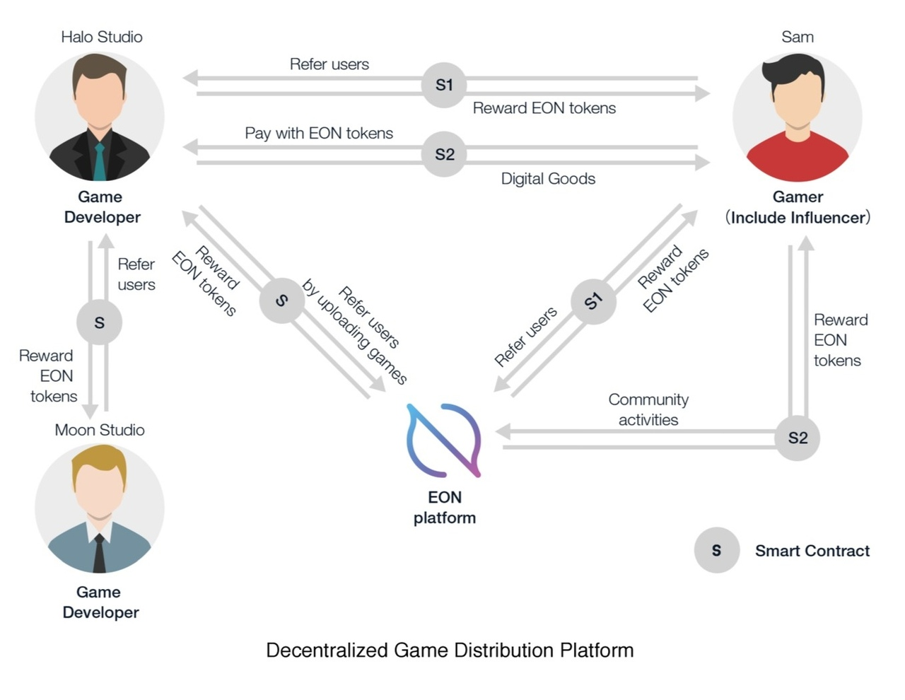 Nền tảng EON là nền tảng trò chơi được hỗ trợ bởi chuỗi chặn. Đề án được phát triển ở Palo Alto và được phát triển để trao quyền cho lập trình viên để họ có thể tạo ra nhiều trò chơi hơn cho người tiêu dùng nền tảng. Game thủ sẽ tìm thấy những trò chơi và người sáng tạo khổng lồ dễ dàng hơn có thể đơn giản giải quyết sự sáng tạo của họ thông qua nền tảng EON áp dụng mã thông báo EON.